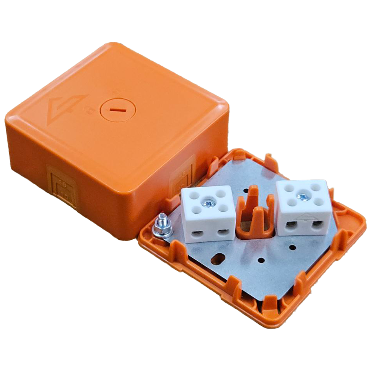 Корпус коробки имеет квадратную форму и изготовлен из самозатухающего пластика, толщиной 1,5 мм. Коробка состоит из основания, крышки и металлической площадки с керамическими клеммами. В основании коробки имеются отверстия для крепления её к несущей конструкции, а также защёлка, при помощи которой к основанию крепится металлическая площадка с клеммами. На площадке также имеется винт заземления. Металлическая площадка изготовлена из оцинкованной стали толщиной 0,5 мм.