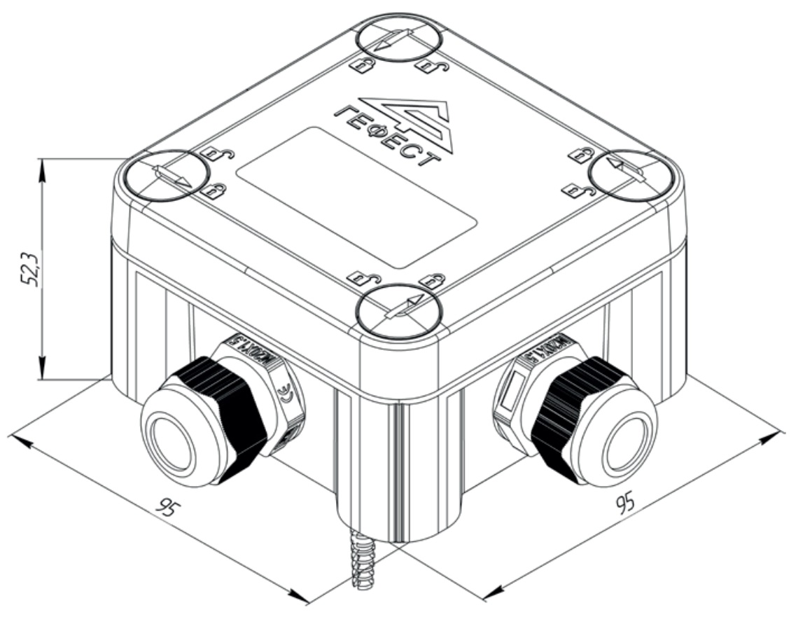 | Размер, без учёта элементов крепления и кабельных вводов | 95x95x52 мм |