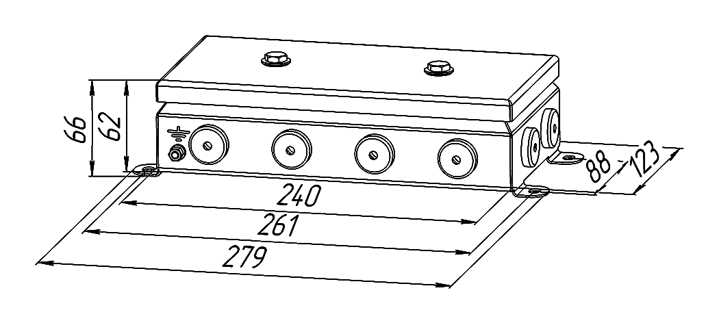 В боковых стенках установлены кабельные вводы из резины, обеспечивающие степень защиты не ниже IP66.