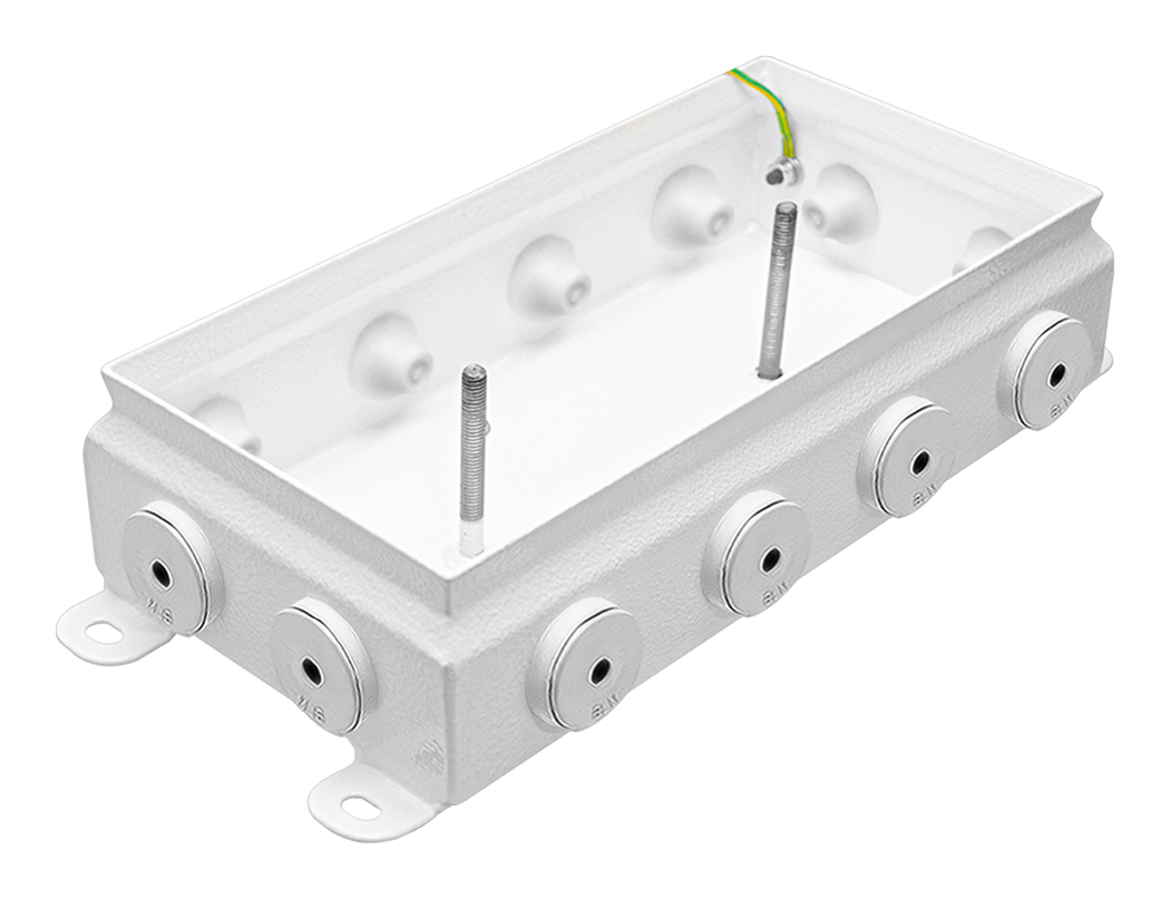 Коробки монтажные имеют повышенную коррозионную стойкость за счёт гальванической обработки и полимерного покрытия. Все наружные элементы крепления выполнены из нержавеющей стали.