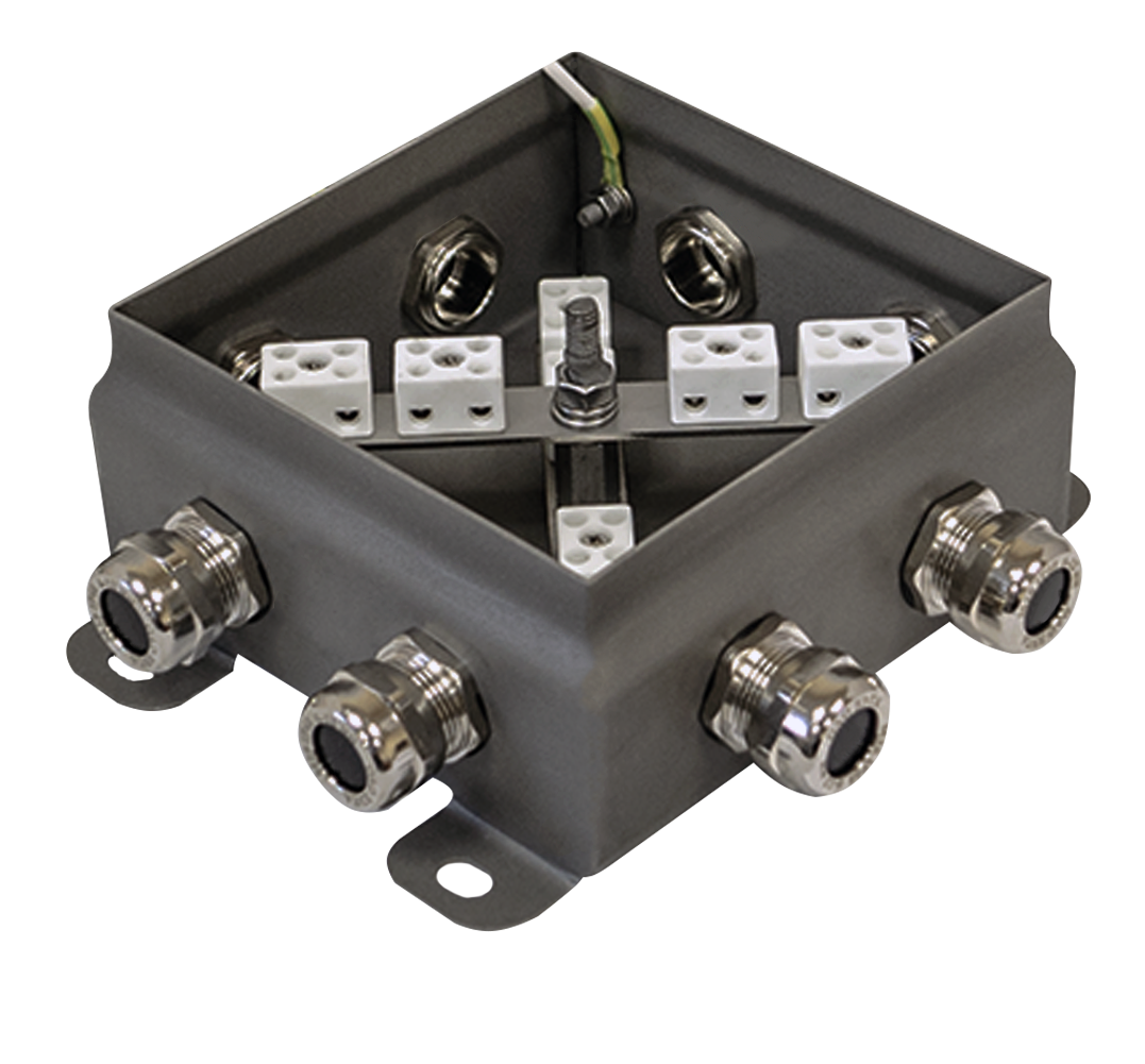 Коробки монтажные огнестойкие изготовлены из нержавеющей стали марки AISI 304, которая обладает химической и коррозионной стойкостью, высокой прочностью, а также имеет превосходные низкотемпературные свойства. Концы винтов на клеммной колодке имеют округлую форму, что позволяет зафиксировать провода без повреждений. Клеммные колодки из керамики обеспечивают надёжное соединение в условиях пожара. Все наружные элементы крепления выполнены из нержавеющей стали.
