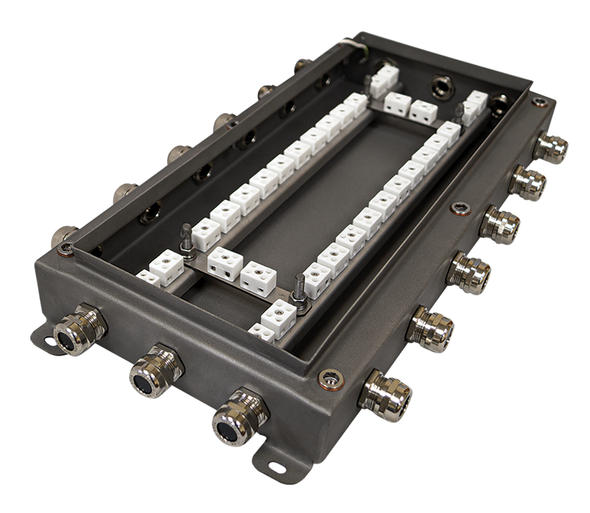 Корпус коробок из нержавеющей стали имеет прямоугольную или квадратную форму. Крышка герметично прилегает к корпусу за счёт соединения винтами и уплотнительной силиконовой прокладки. Внутри корпуса располагаются керамические клеммные колодки. На крышке и корпусе располагаются заземляющие зажимы «РЕ».