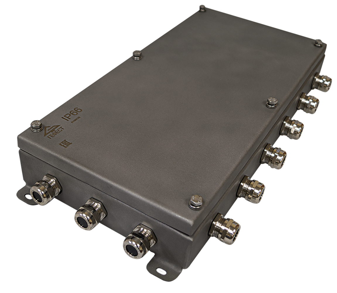 В боковых стенках установлены кабельные вводы из нержавеющей стали, обеспечивающие степень защиты не ниже IP66.