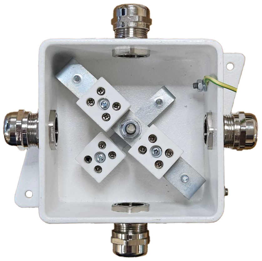 Клеммные колодки из керамики обеспечивают надёжное соединение в условиях пожара. Все наружные элементы крепления выполнены из нержавеющей стали.