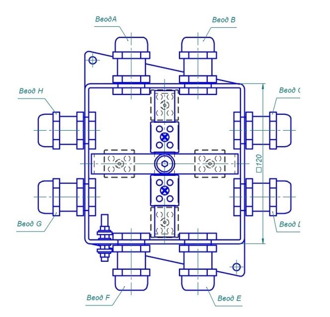 | Обозначение | КМ-О (4к*6.0)-IP66-120x120 3 ввода |