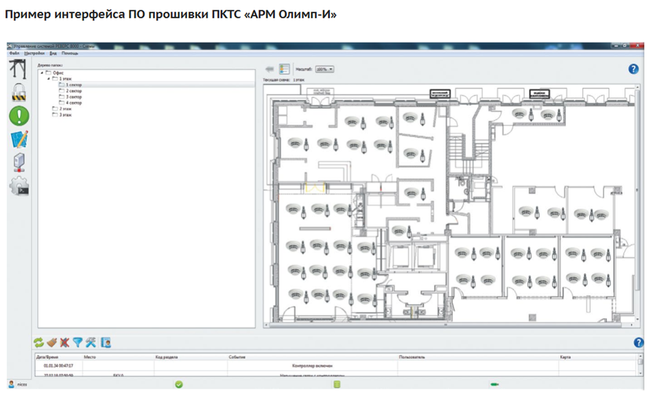 Позволяет организовать отображение состояния ПКТС «Олимп-И» на объектах любой степени сложности в виде журнала событий и на графических планах.