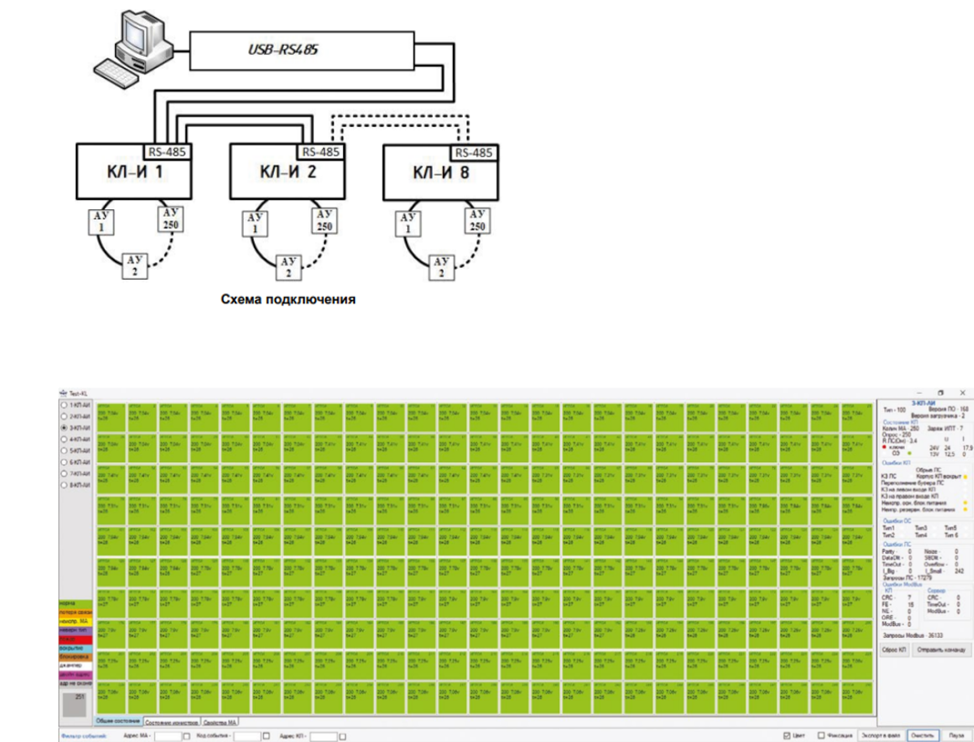 Прямое подключение к КЛ-И по линии связи RS-485. Одновременная работа с 8 КЛ-И.
